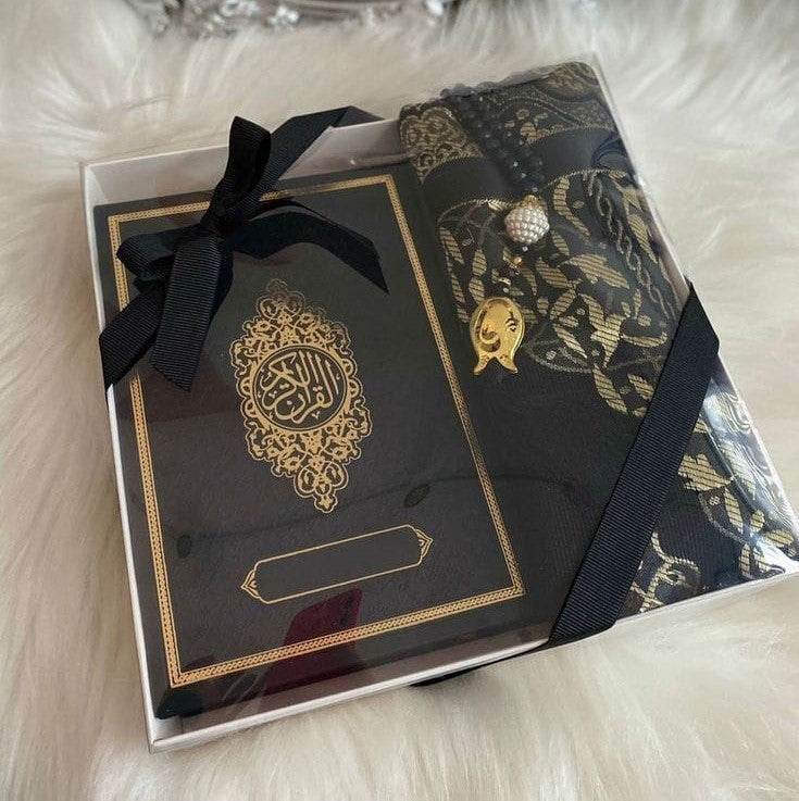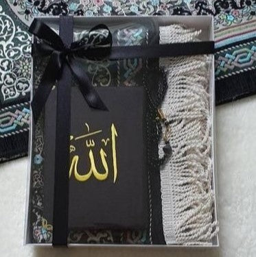 Boîte raffinée idéale pour contenir un Coran, un tapis de prière, un chapelet ou d’autres cadeaux religieux.