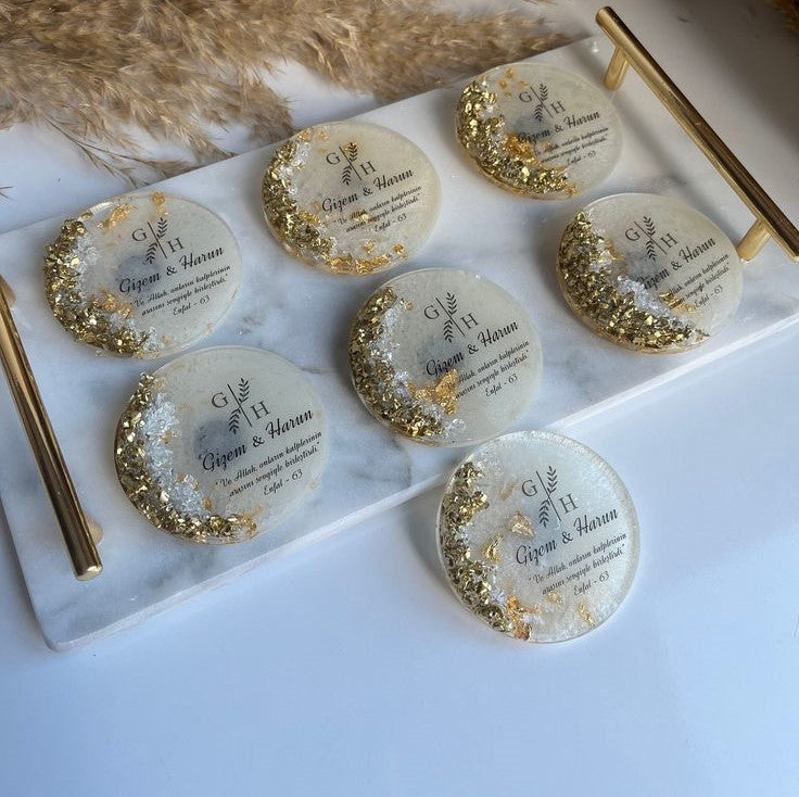 Sublimez vos décorations et vos présentations avec ces magnifiques pièces rondes en résine, ornées d’une finition dorée élégante qui attire le regard.