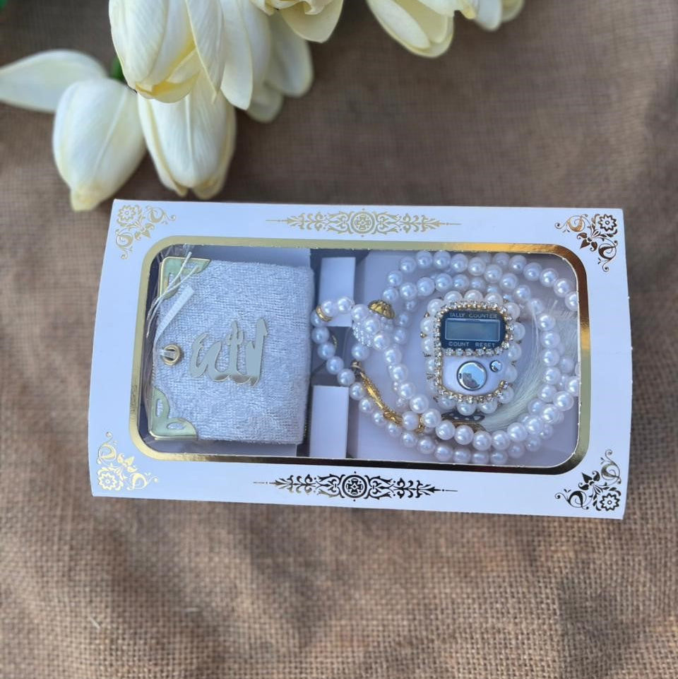 Il se compose d’un chapelet perlé raffiné et d’un mini Coran délicatement décoré, présentés dans une boîte chic prête à offrir.