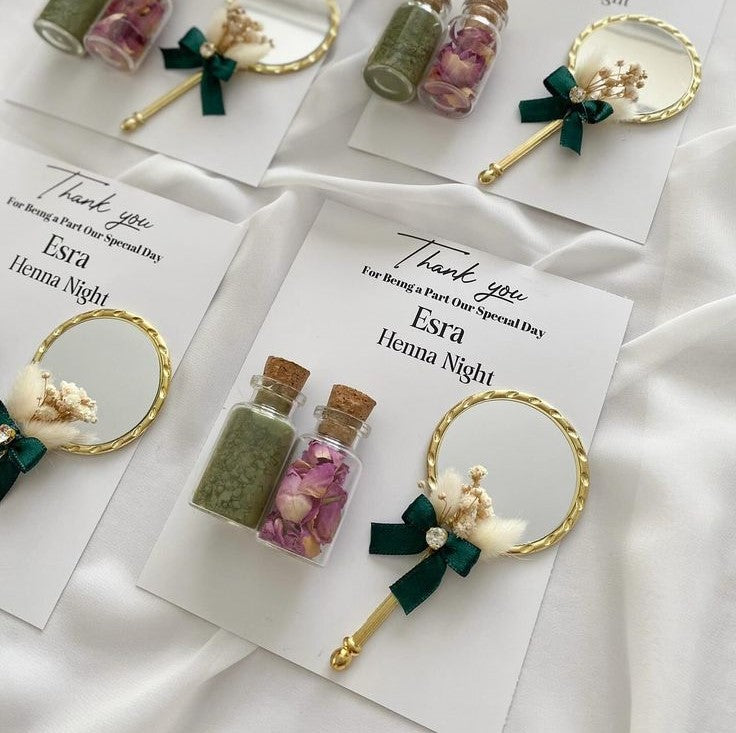 Avec ses quatre petits miroirs ronds et son motif central en forme d’ange, cette pièce apporte un charme luxueux à vos cadeaux d’événements.