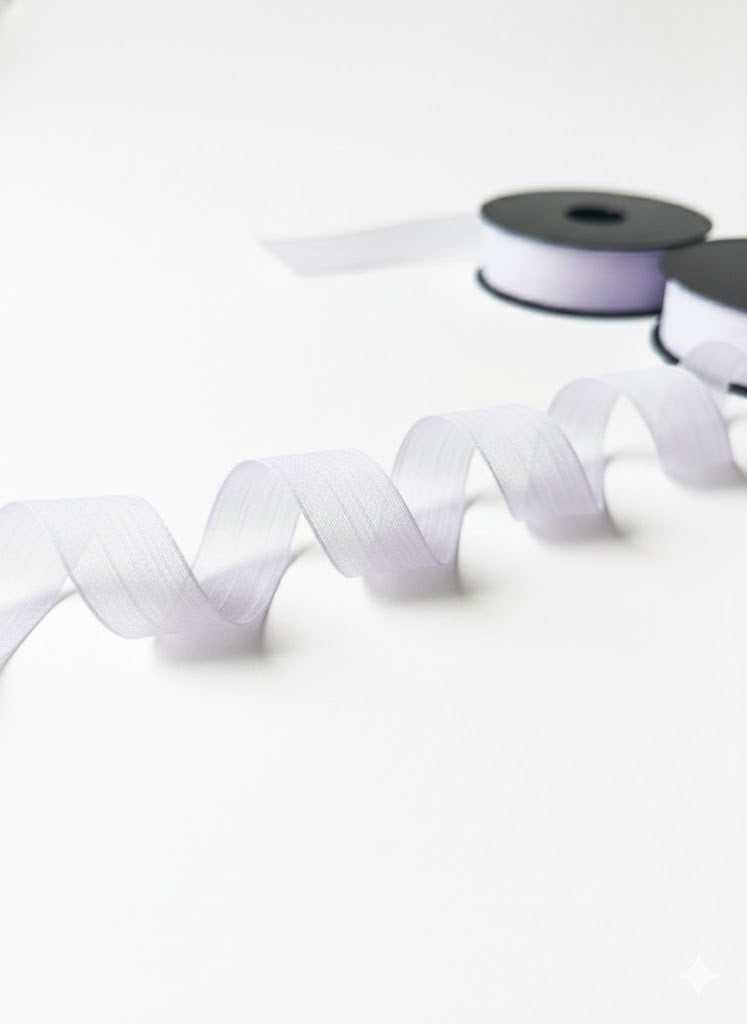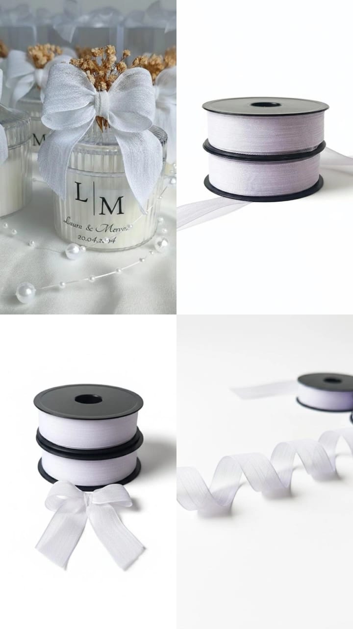 Ruban décoratif de couleur blanc , doux et élégant, fabriqué en tissu léger (organza ou satin fin). Il est souple, facile à couper et à utiliser, et apporte une touche raffinée à tous vos emballages.